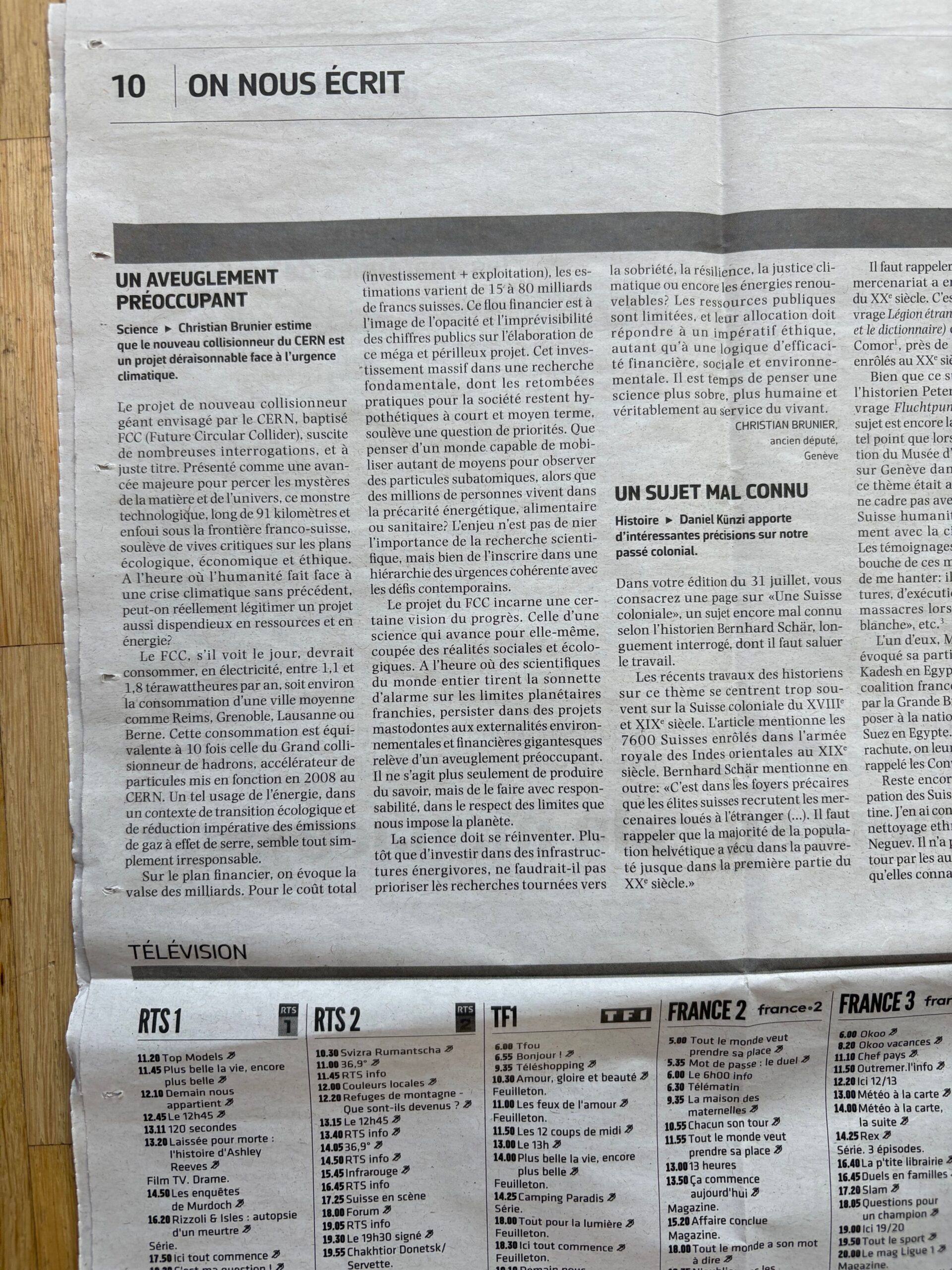 Christian Brunier estime que le nouveau collisionneur du CERN est un projet déraisonnable face à l’urgence climatique.