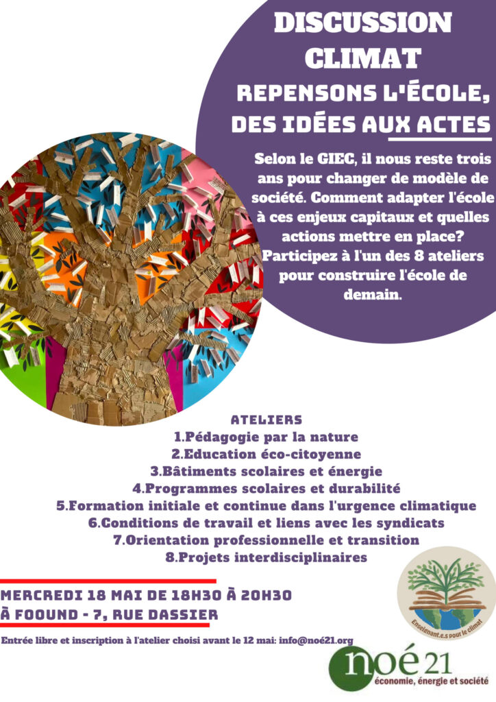 Noé21 organise des séminaires pour enseignants : quel savoir et quel savoir vivre pour préparer les élèves au bouleversement climatique.